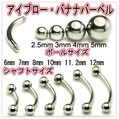眉ピアス 16G スタンダード バナナバーベル 軟骨ピアス アイブローピアス ステンレスピアス ボディピアス