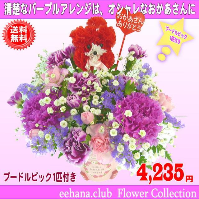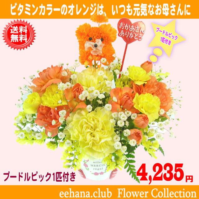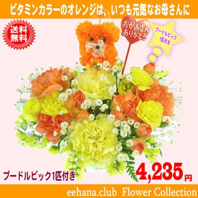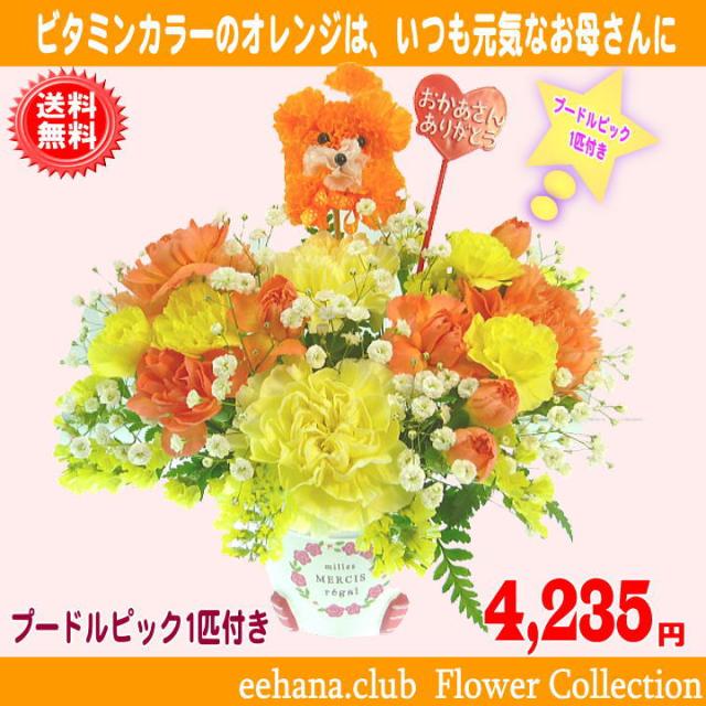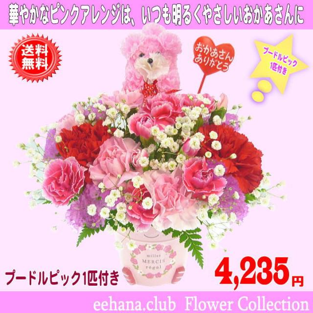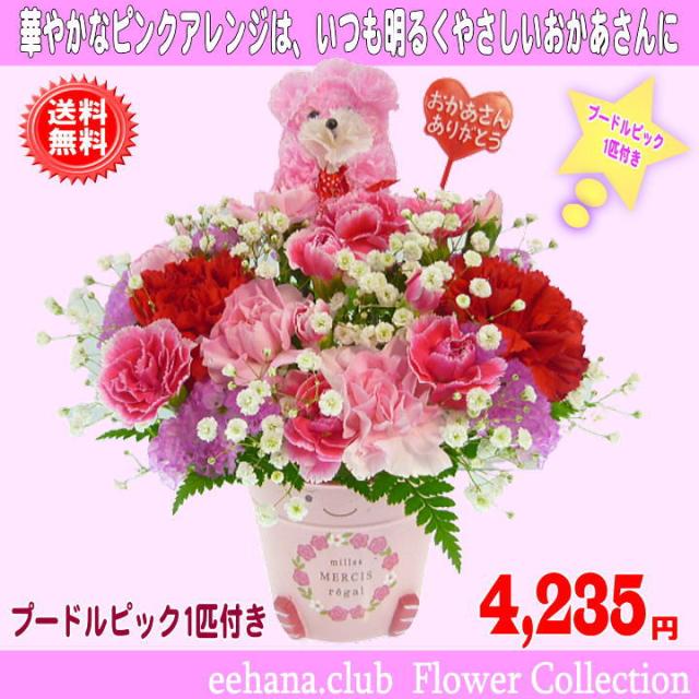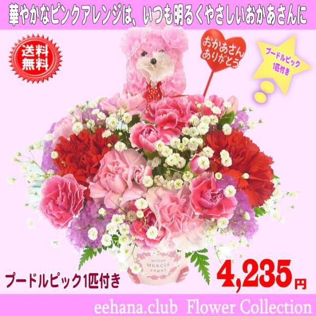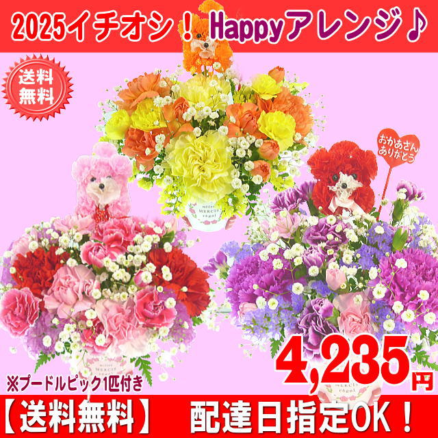 母の日 2025 カーネーション Happyアレンジ4,235円【送料無料】【プードルピック1匹付き!】カーネーション 母の日ギフト 早割 50代 60代 70代 80代