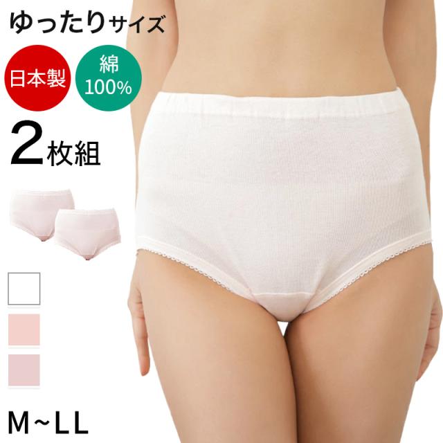 綿100% ショーツ レディース 深ばき ゆったり 2枚組 M〜LL 下着 女性 パンツ 深履き 大きめ お腹すっぽり 大きい 60代 70代 肌着 インナー 介護 介護パンツ 入院 病院 日本製 M L LL