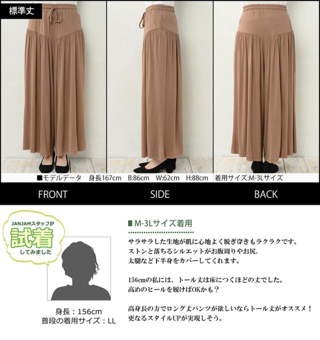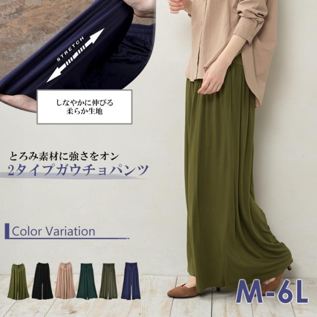 送料無料※沖縄/北海道対象外 大きいサイズ レディース ガウチョパンツ フレアパンツ ワイドパンツ リラックスパンツ とろみ素材 体型カバー