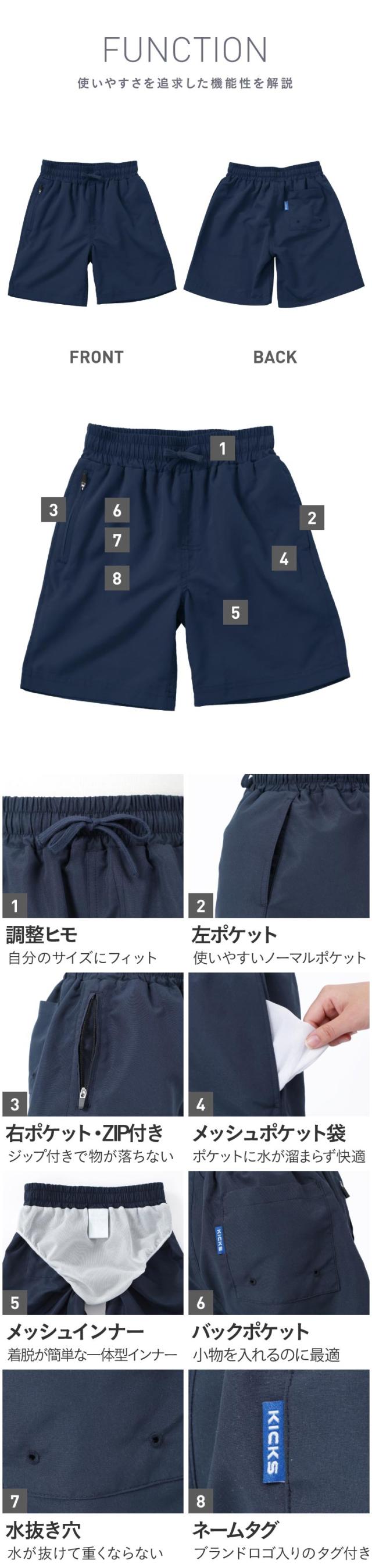 サーフパンツ キッズ ショート丈 速乾 インナー付き 名前タグ付 耐塩素加工 ボードショーツ 水着 ジュニア 子供用 男の子 女の子 ウエストゴム ヒモ付き KJR-285
