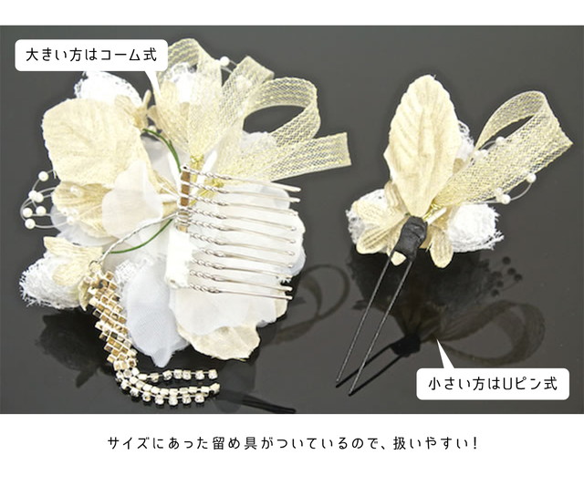 装着は簡単なコームとUピン式で、どなたでも簡単にヘアアレンジする事が出来ます。