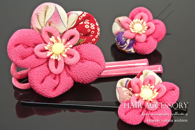 成人式 髪飾り 成人式の髪飾り 3点セット 卒業式 振袖 花 フラワー ピンク 梅 縮緬 和柄 房飾り 簪 髪留め 髪かざり 振り袖 ヘアアクセサリー 和装