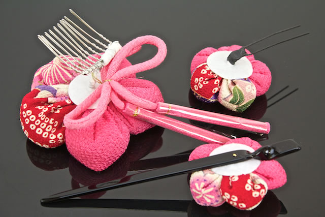 装着はそれぞれコームとUピン、簪で、どなたでも簡単にヘアアレンジする事が出来ます。