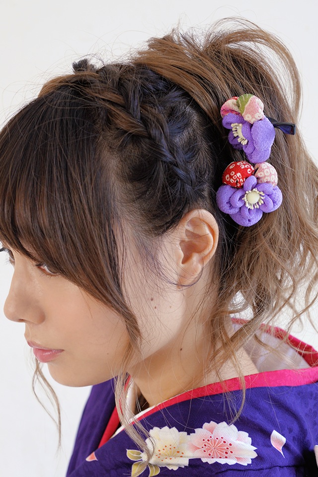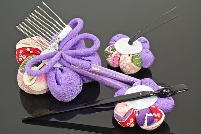 装着はそれぞれコームとUピン、簪で、どなたでも簡単にヘアアレンジする事が出来ます。