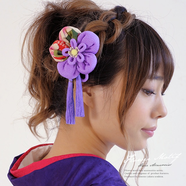 成人式 髪飾り 成人式の髪飾り 3点セット 卒業式 振袖 花 フラワー 紫 梅 縮緬 和柄 房飾り 簪 髪留め 髪かざり ヘアアクセサリー 和装