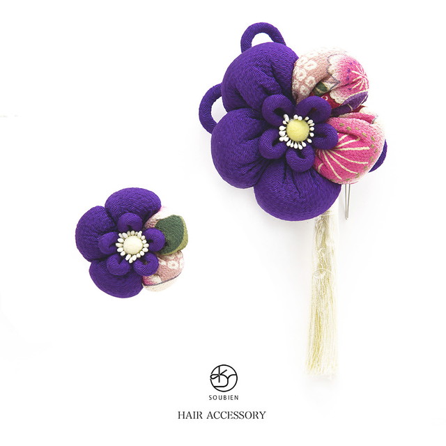 成人式 髪飾り 成人式の髪飾り 2点セット 卒業式 振袖 花 フラワー 紫 梅 縮緬 和柄 房飾り 簪 かんざし 髪留め 髪かざり ヘアアクセサリー 和装