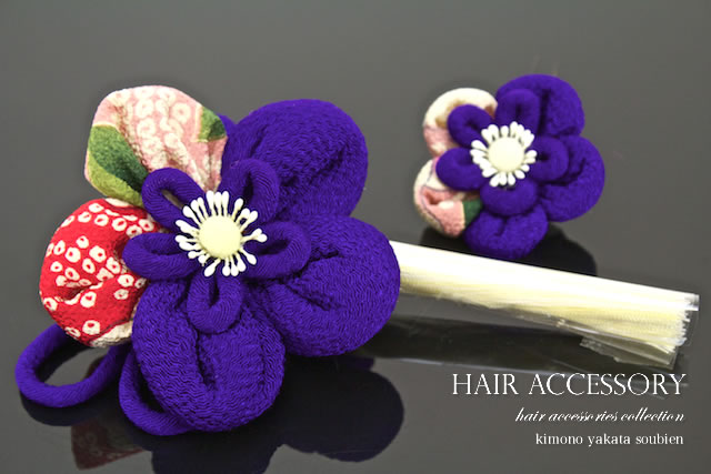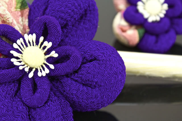 和柄の縮緬素材を用いて、梅の花の髪飾りに仕上げました。