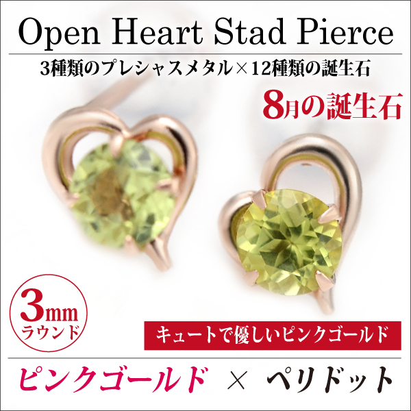 ペリドット ピアス 送料無料 K10 ピンクゴールド オープンハート スタッド 両耳ペア