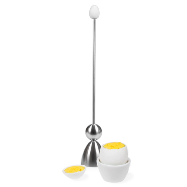 ゆで卵の先端にこのクラックかぶせ、ボールを落とすだけで殻の先端部がきれいに割れます。※本商品は卵割器のみになります。エッグスタンドは付属しませんのでご注意ください。[サイズ]全長:242mm、先端クラック部外径:40mm(箱:47x47x295mm)[材質]本体:ステンレス、持ち手部:木[重量]108g(箱も含む重量:164g)
