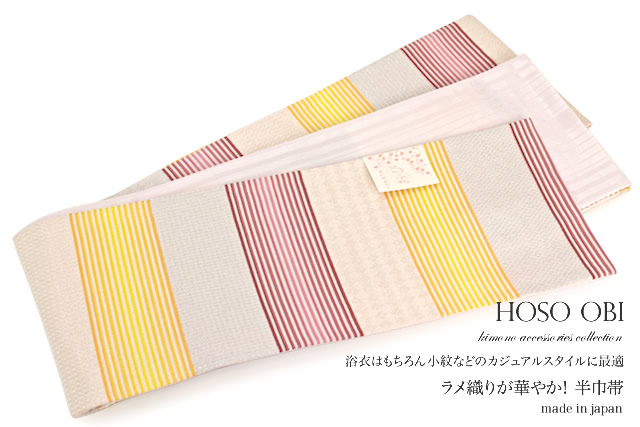 半幅帯 リバーシブル 浴衣 帯 小紋 夏着物 黄色 ピンク ラメ 縞 チェック 半巾帯 細帯