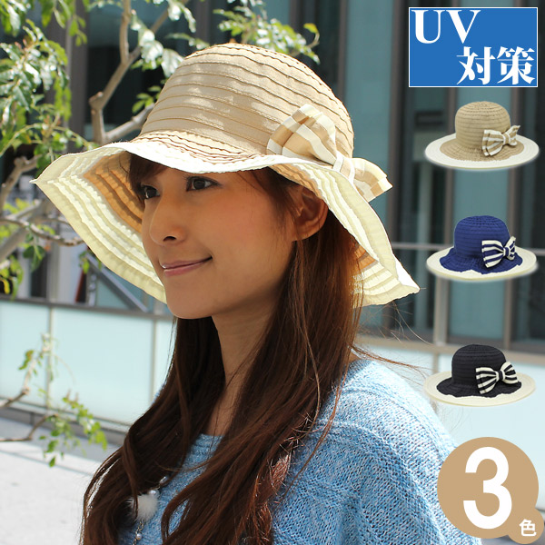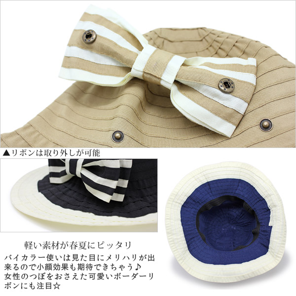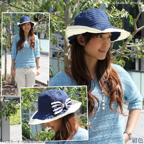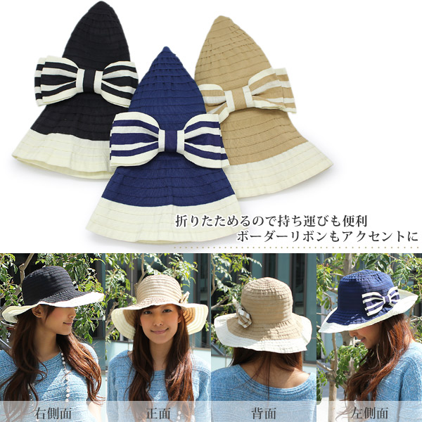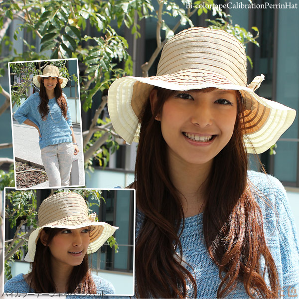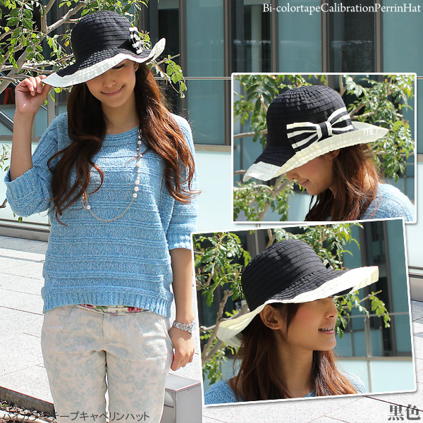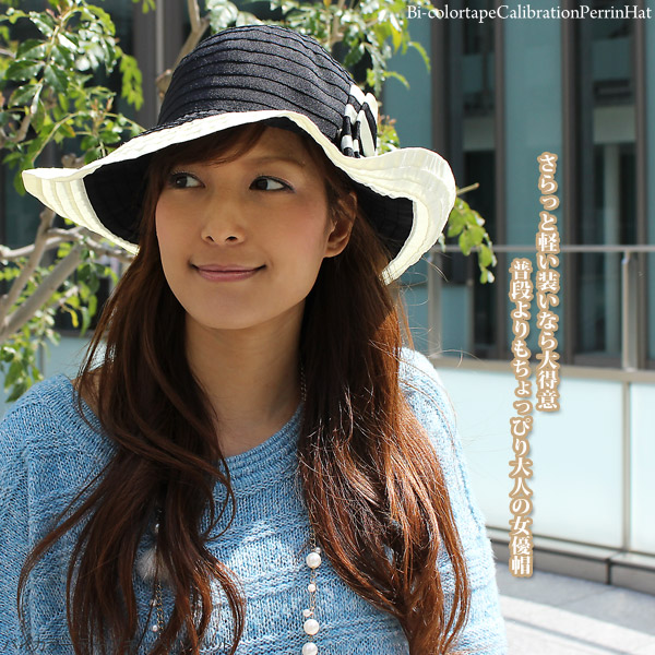 つば広 ハット [メール便可] レディース 帽子 春夏 折りたたみ 小顔効果 UV対策 / バイカラーテープキャペリンハット