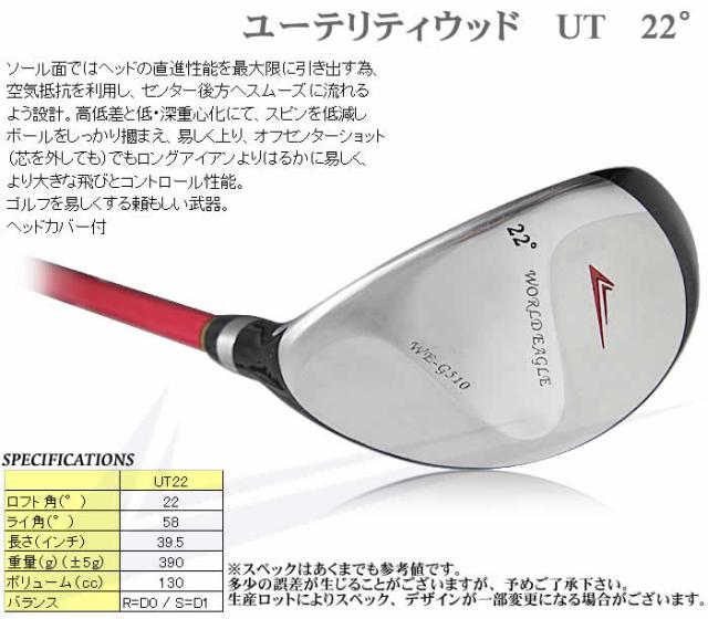 ワールドイーグル G510 メンズ ユーティリティ ウッド 22° 左利き用