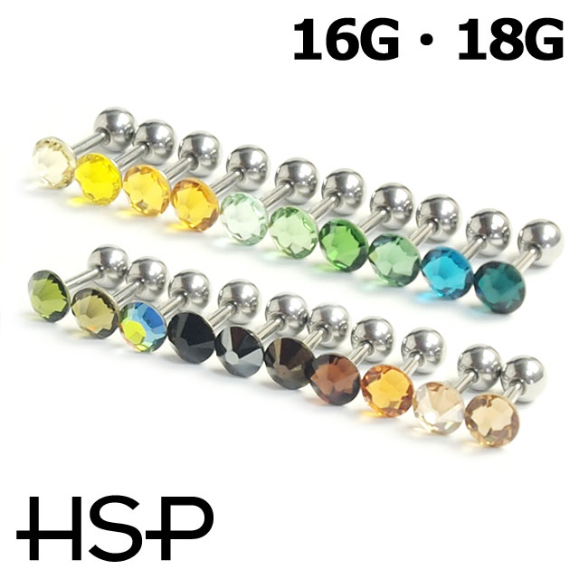 [ HSP ] フラット 縁なし 黄・緑・茶系 ラウンド ジュエル ストレートバーベル 16G 18G [ ボディピアス 軟骨 ステンレス トラガス ]