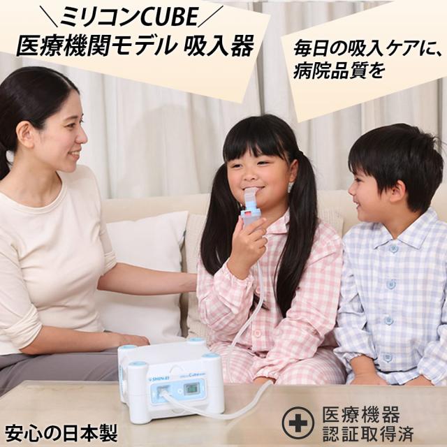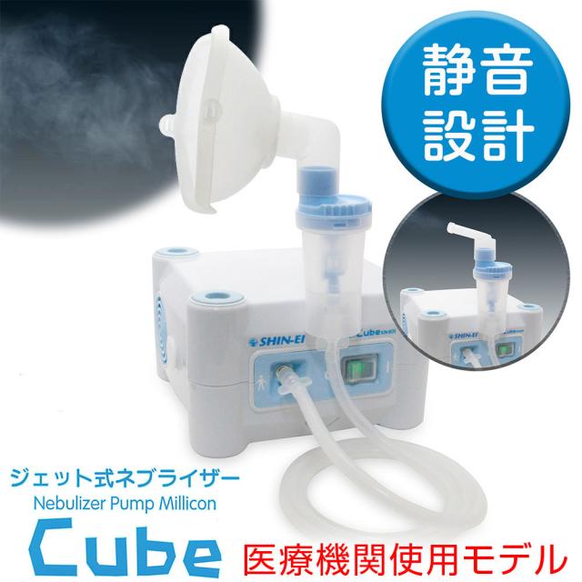 新鋭工業 ネブライザ ミリコンキューブは、ジェット式ネブライザ(吸入器)。ご家庭でも簡単安心にお使いいただけるパーソナルユースにお奨めの吸入器。