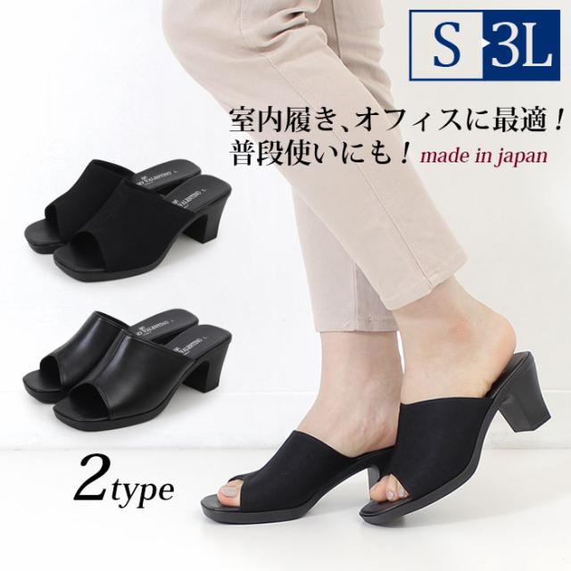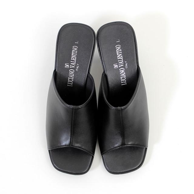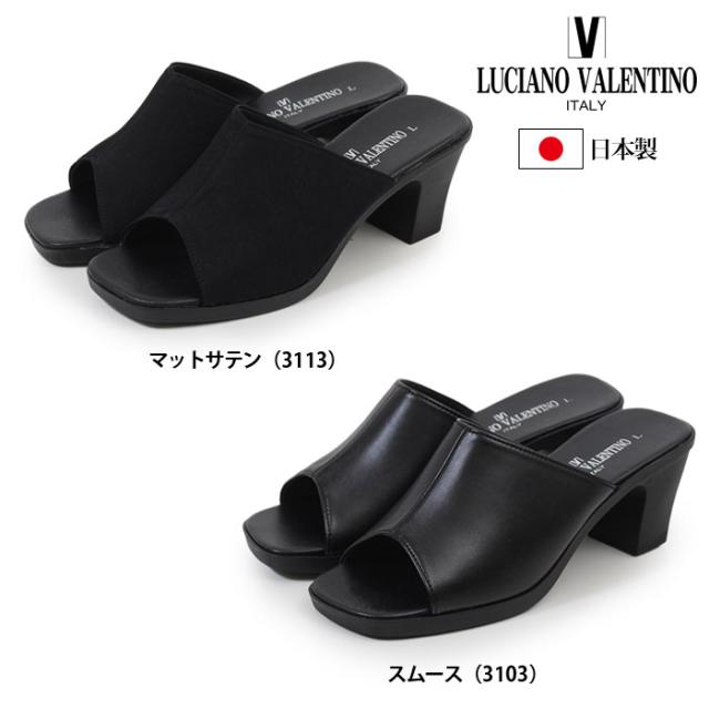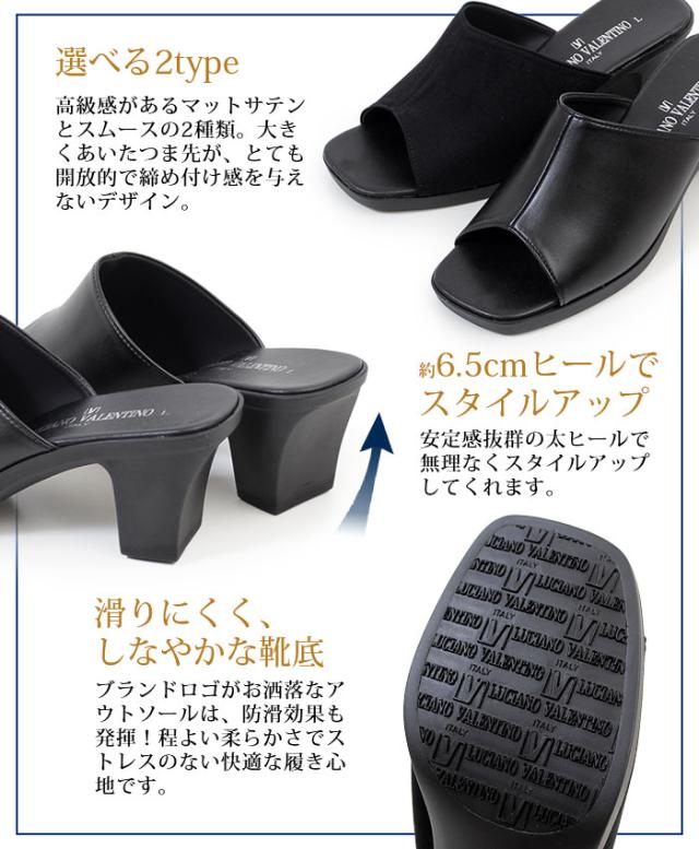 オフィス サンダル レディース 美脚 ヒール 黒 3900 3901 ルチアーノバレンチノ 日本製 ミュール ブラック オープントゥ LUCIANO VALENTINO