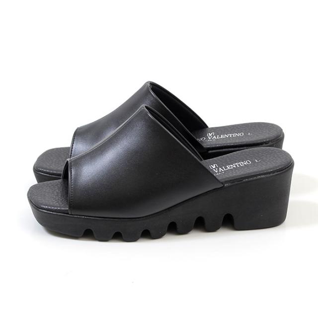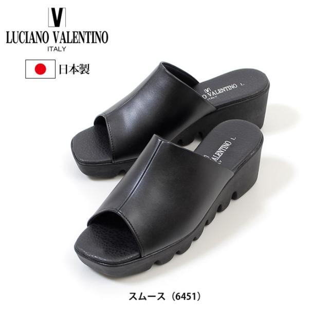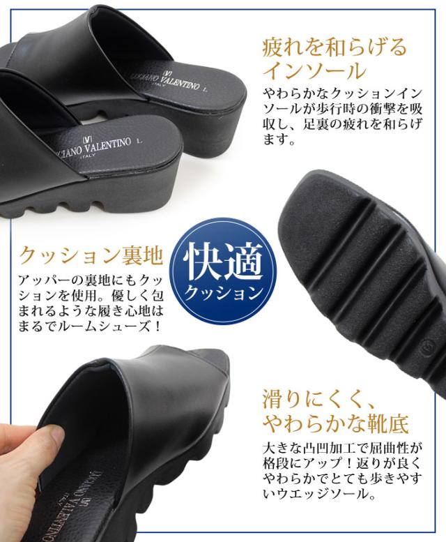 オフィス サンダル レディース 厚底 美脚 ヒール 黒 6451 ルチアーノバレンチノ 日本製 ミュール ブラック 屈曲 クッション LUCIANO VALENTINO