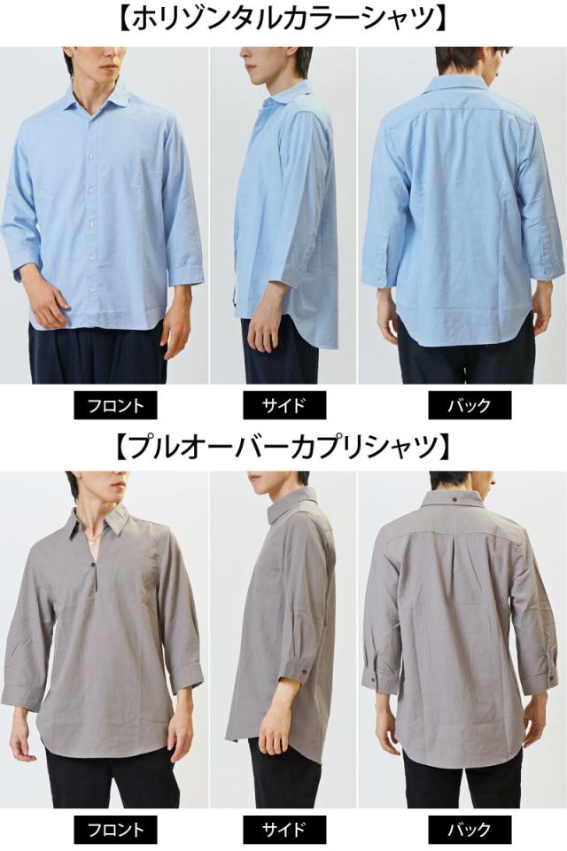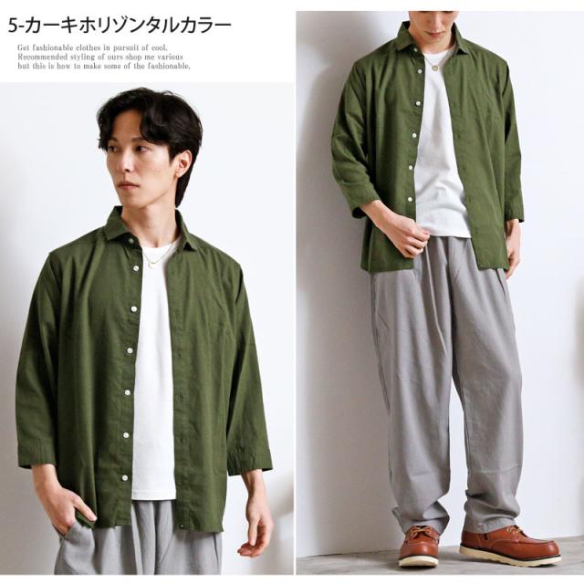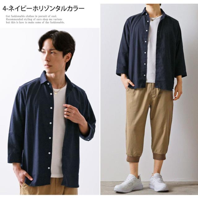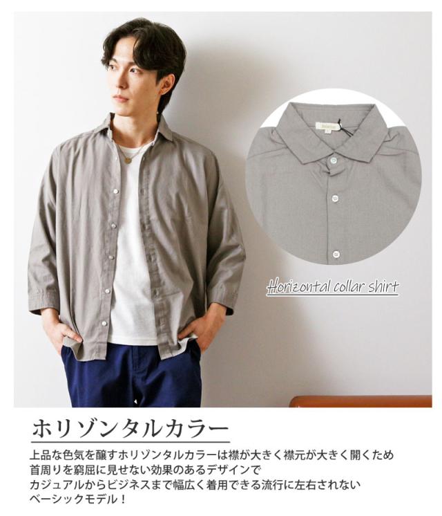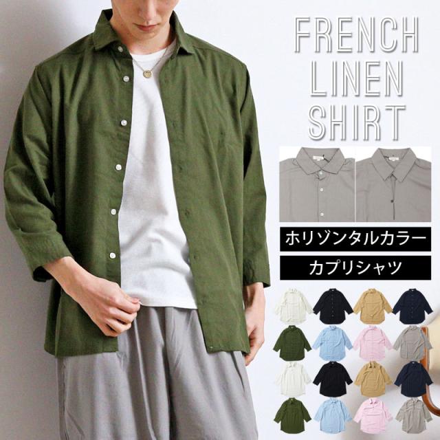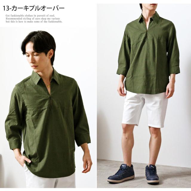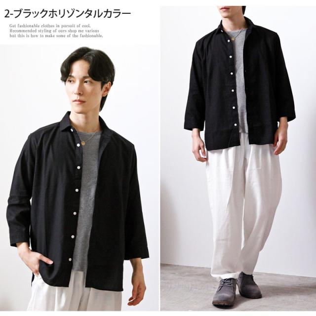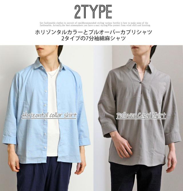 春 夏 新作 7分袖 シャツ 無地 リネン 麻 レーヨン コットン ホリゾンタルカラー カプリシャツ プルオーバーシャツ 通気性吸湿性 2025リニューアルVer 送料無料 ゆうパケ