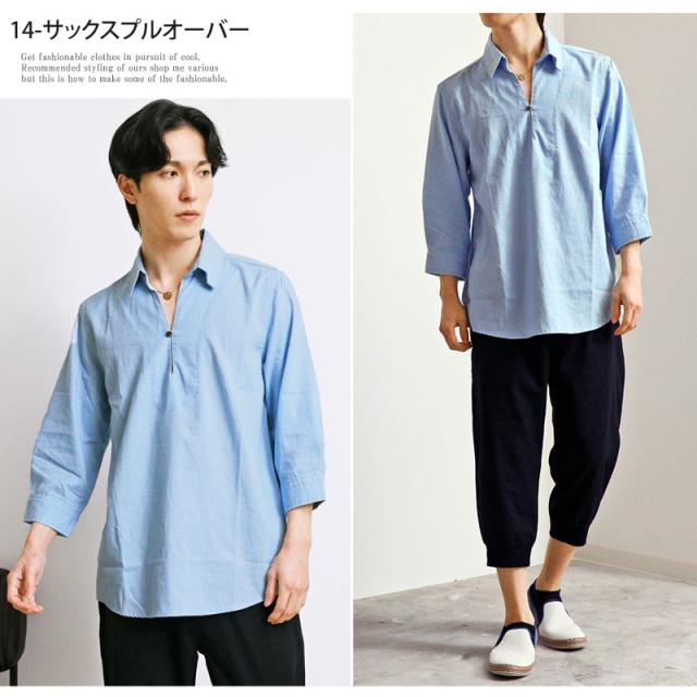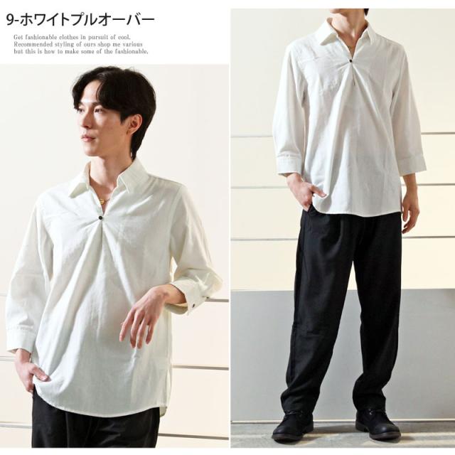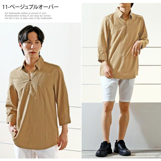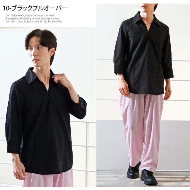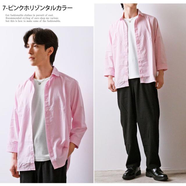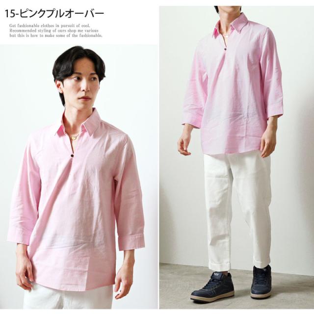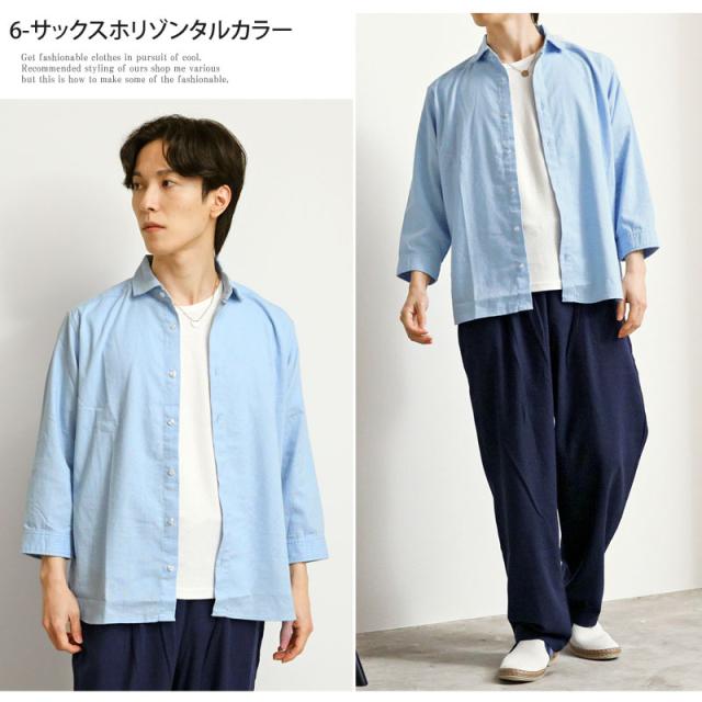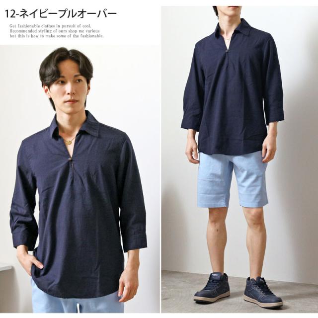 春 夏 新作 7分袖 シャツ 無地 リネン 麻 レーヨン コットン ホリゾンタルカラー カプリシャツ プルオーバーシャツ 通気性吸湿性 2025リニューアルVer 送料無料 ゆうパケ