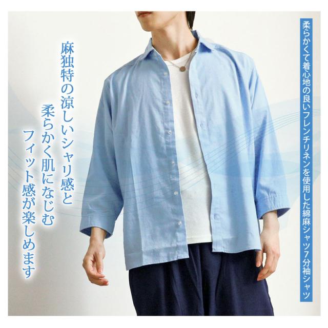 柔らかくて着心地の良いフレンチリネンを使用した綿麻シャツ7分袖シャツ。