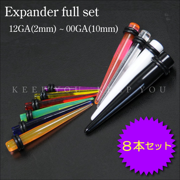 【メール便対応】エキスパンダー フルセット 8個セット UVアクリル 拡張器 ホールアップ 【ボディピアスインサーションピン インサートニードル イヤーロブ 00G 0G 2G 4G 6G 8G 10G 12G】12GA(2mm)?00GA(10mm) ┃