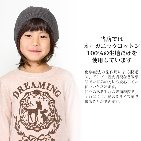 医療用帽子 キッズ [メール便可] 帽子 子供用 抗がん剤治療 / キッズ オーガニックコットン ナチュラル ニット帽 日本製