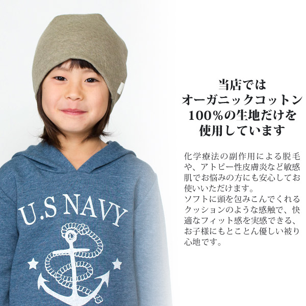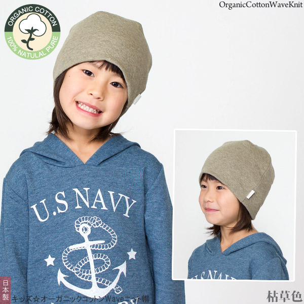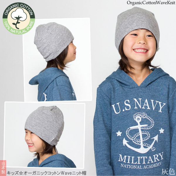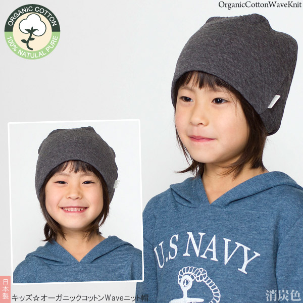 医療用帽子 [メール便可] ニット帽 子供用 抗がん剤治療 / キッズ オーガニックコットンWaveニット帽 日本製
