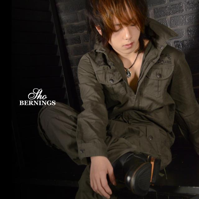 つなぎ スカル 刺繍 オールインワン 襟付き メンズ(ベージュ) 231223a