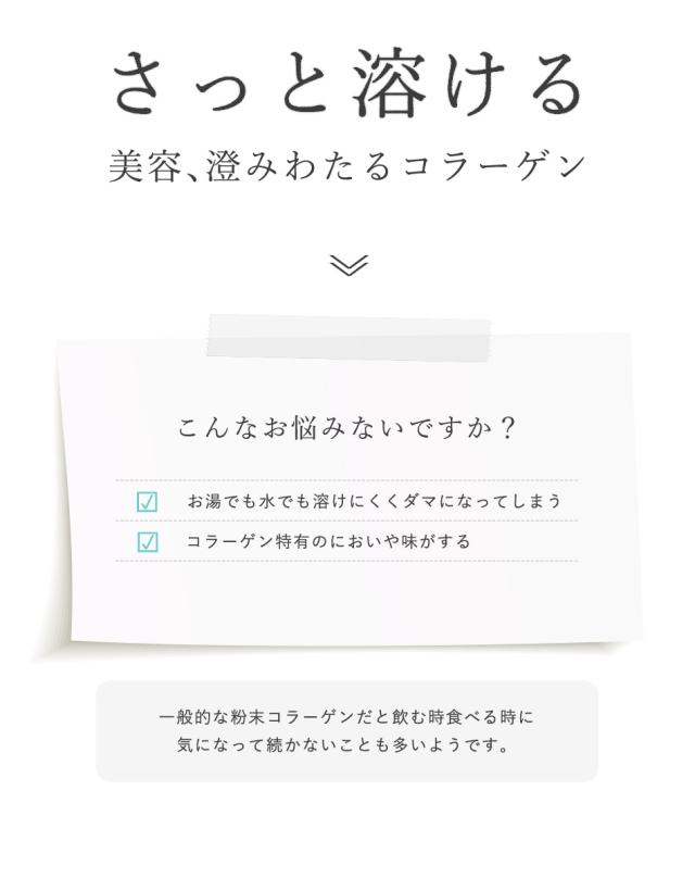 - これまで使ってたコラーゲンは、味がしてイヤだったけど、これはコーヒーに入れても味がしない。とてもいい。