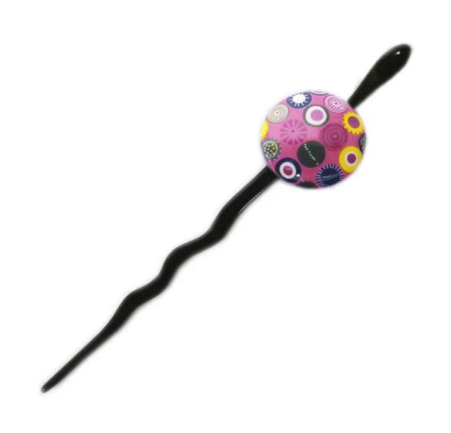かんざし 簪 髪飾り 平打玉 ピンク紫玉パステルドット 日本製 着物 きもの 浴衣 舞妓気分 髪かざり