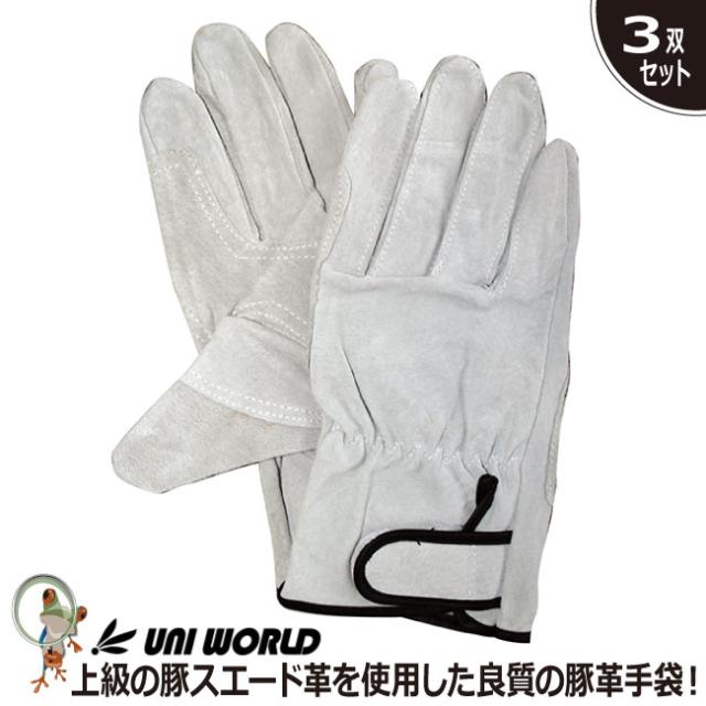 手袋 豚革手袋 ユニワールド 豚スエードマジック当付 No.320 当付豚革手袋【お得3双セット】革手袋 スエード