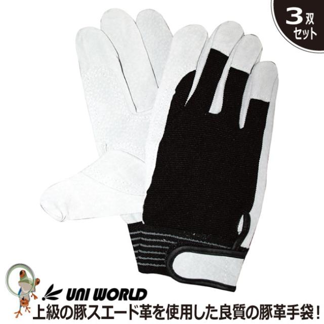 革手袋 ユニワールド 豚スエードマジック背抜き No.310 当付豚革背抜き手袋【お得3双セット】革手袋 背抜き手袋
