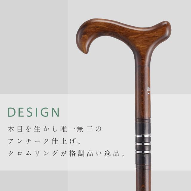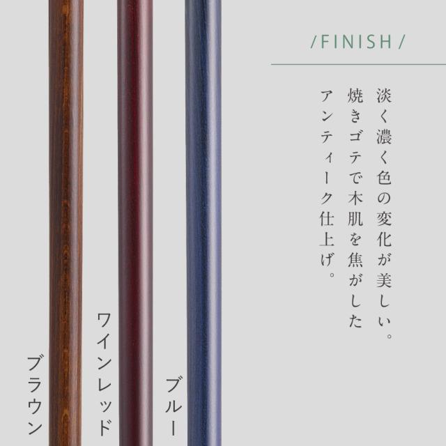 冬にグリップを握っても冷たさが少なく、手触りも滑らかな天然木。木目が美しく味わいのある親しみやすい杖です。