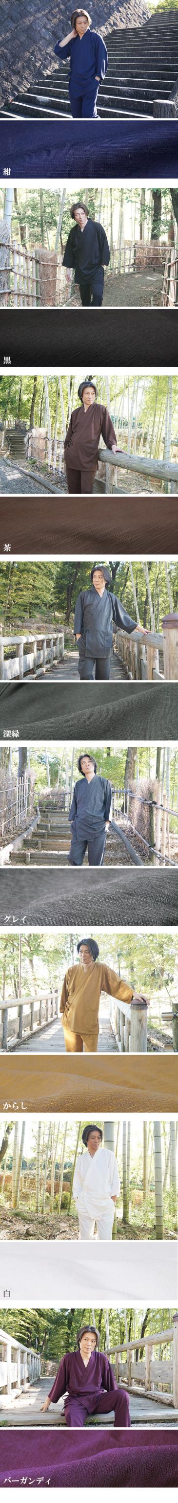 お洒落作務衣■素材:表地:ポリエステル84% レーヨン11% ポリウレタン5%