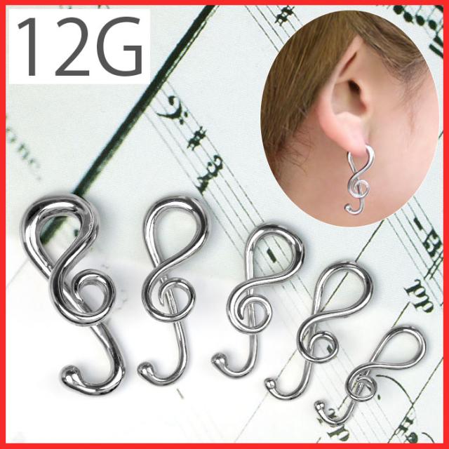 ボディピアス 12G 軟骨ピアス 変形 トライバル ト音記号音符 音楽 シルバー ラージゲージ