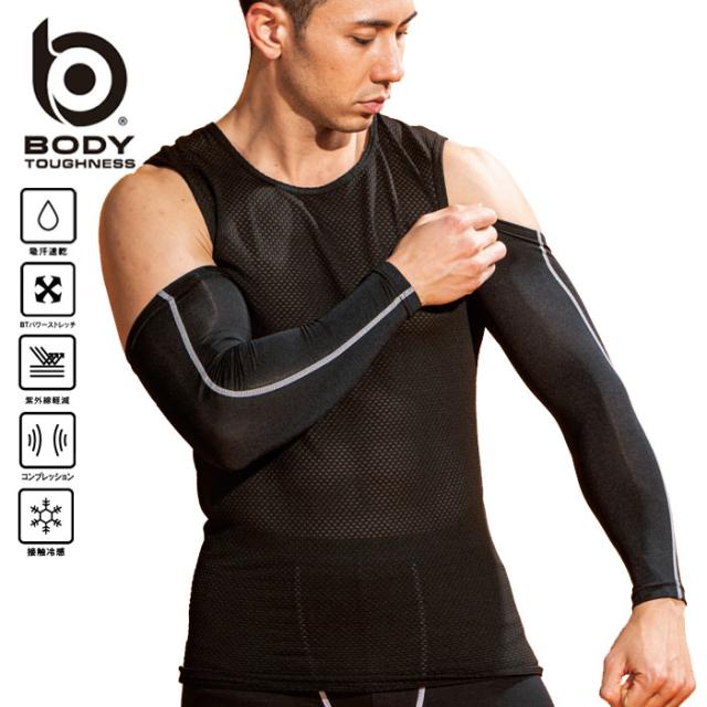 BODY-TOUGHNESS 冷感パワーストレッチ アームカバー【UVカット/コンプレッション/自転車/ランニング】JW-618(パケット便送料無料)