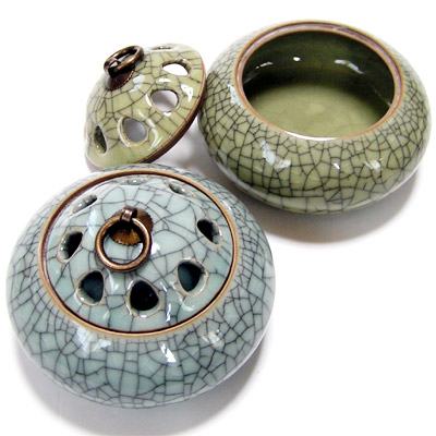 職人が丹精込めて作られた香炉は、釉薬によって微妙な色彩を発し表面のヒビ割れは時に職人が創造した以上のモノが出来上がるそうです。独特の丸みを帯びた香炉の形状は、手に取ればしっくりと馴染み じっくりと眺めれば飽きがきません。お香を焚いて香りを楽しむも良し。ちょっとした小物入れがわりに使ってもいいですね。■サイズ:Φ10.5cm×高さ7.4cm、香炉フタ:Φ7cm×高さ3.5cm■素材:陶器■ネコポス便:※利用不可!絶対にネコポス便を選ばないで下さい!≫★中国雑貨★※中国直輸入品の為、多少の作りの粗さ等があります。
