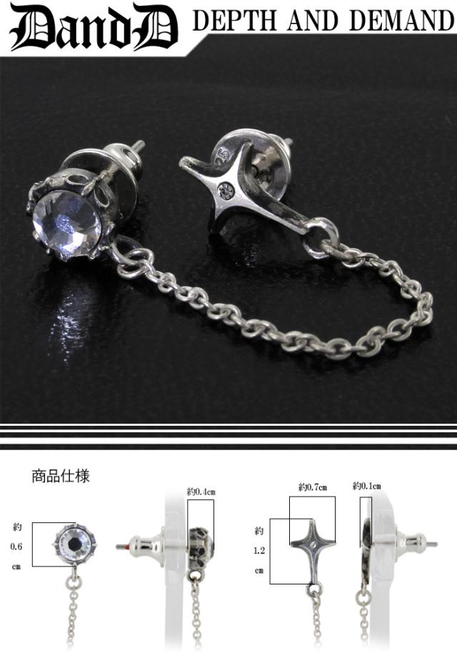 クロス&スワロフスキーチェーン付シルバースタッズピアス(1P片耳)【D and D】シルバー925 メンズ 男性用 ピアス 片耳 ブランド ユニーク