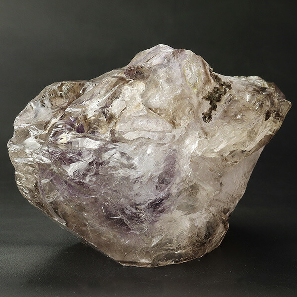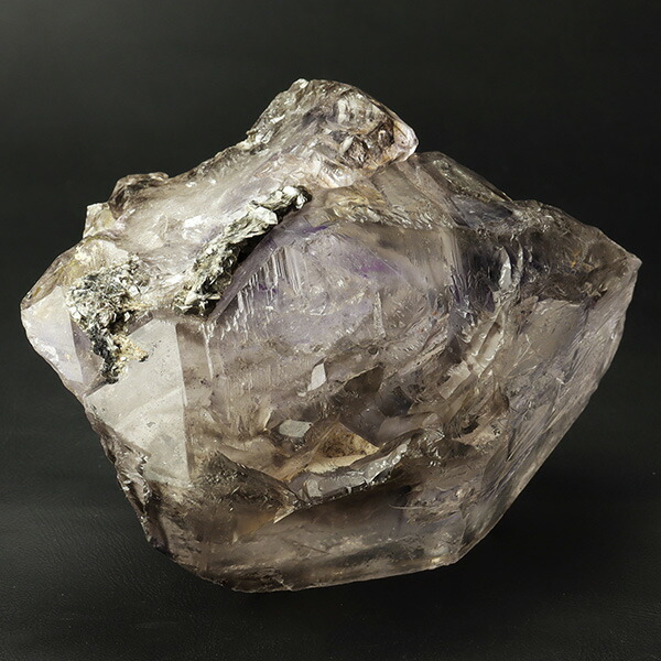 薄くスモーキーがかった水晶に、複雑に入り混じった内包物や、アメジストの層などをはっきりとご覧頂ける一品。