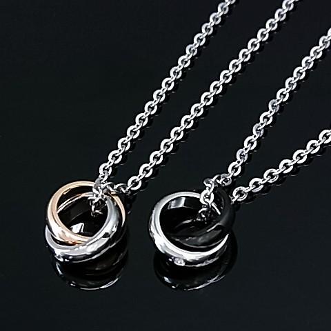 LION HEART/ライオンハート【ステンレスアクセ】ペアネックレス 2連リングトップ ステンレスネックレス 04N124SM/04N124SL(送料無料)