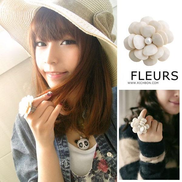 めちゃ可愛い 大粒お花リング 指先キュートに盛れる カメリア フラワー パーティ 指輪 フリーサイズ