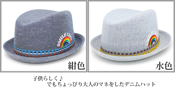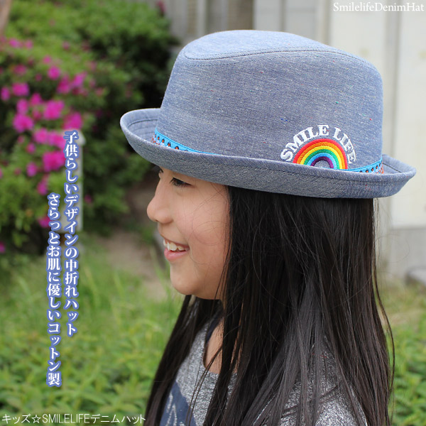 ハット 子供用 帽子 キッズ 中折れ HAT デニム コットン 綿 春夏 男の子 女の子 / キッズ SMILELIFEデニムハット