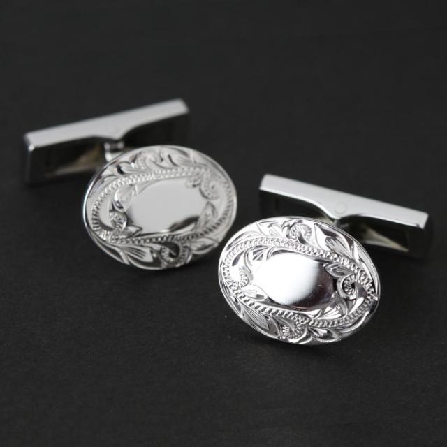 ハワイアンジュエリー カフリンクス カフスボタン スーツ シャツ Yシャツ オーバル 楕円 刻印 無料 誕生石入れ可 シルバー925 ロジウムコーティング 結婚式 結婚 ビジネス BY THE SEA バイザシー 彼氏 夫 男性 メンズ 誕生日 プレゼント ホワイトデー 【品番:SCB2203】
