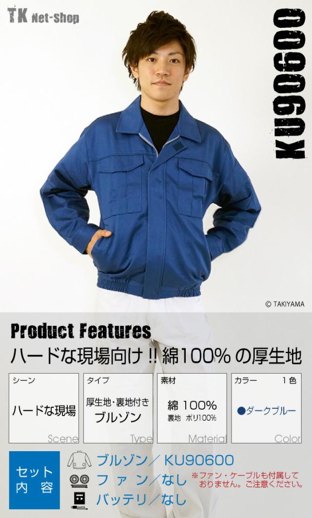 KU90600 空調作業服 ブルゾン 作業服 夏 綿100% 表地 メンズ 単品