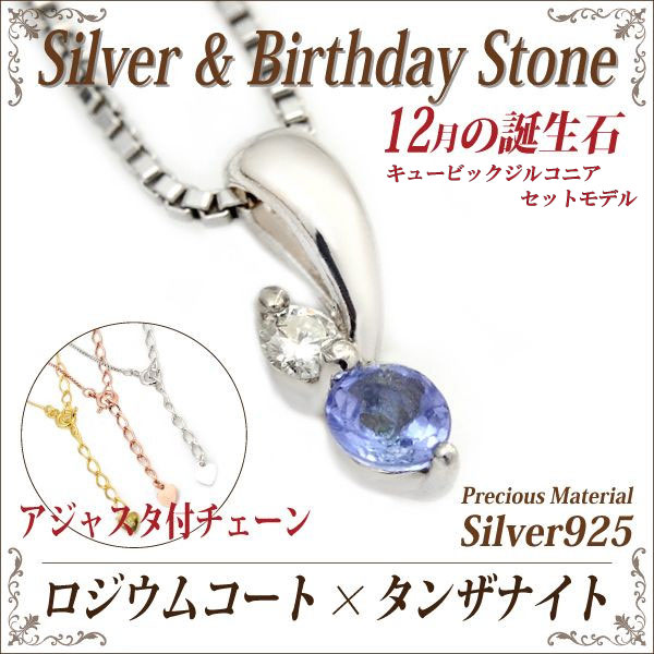 タンザナイト ネックレス 送料無料 シルバー925 誕生石 ペンダント 脇石キュービックジルコニア ツインストーン チェーン 付 ロジウムモデル