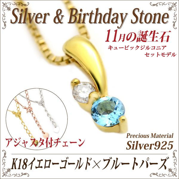 ブルートパーズ ネックレス 送料無料 シルバー925 誕生石 ペンダント 脇石キュービックジルコニア ツインストーン チェーン 付 ゴールドモデル