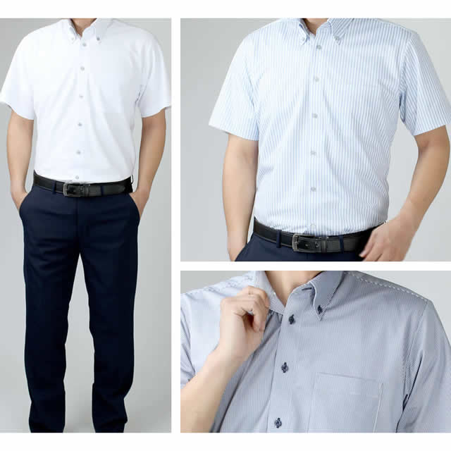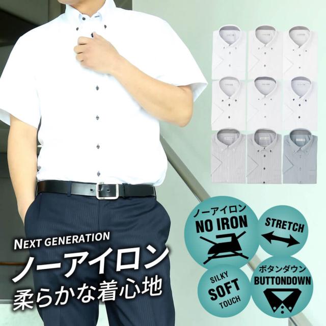 ワイシャツ 半袖 ノーアイロン メンズ 形態安定 ニットシャツ ボタンダウン 2枚は2通 メール便で送料無料 at-ms-set-1171 ビジネス カッターシャツ ドレスシャツ ビジネスシャツ クールビズ Yシャツ 安い シャツ 標準体