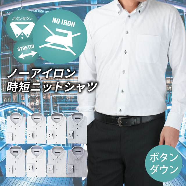 ワイシャツ 長袖 ノーアイロン メンズ 形態安定 ニットシャツ 2枚は2通 メール便で送料無料 at-ml-set-1174 標準体 安い ドレスシャツ カッターシャツ ボタンダウン Yシャツ ビジネスシャツ ビジネス クールビズ