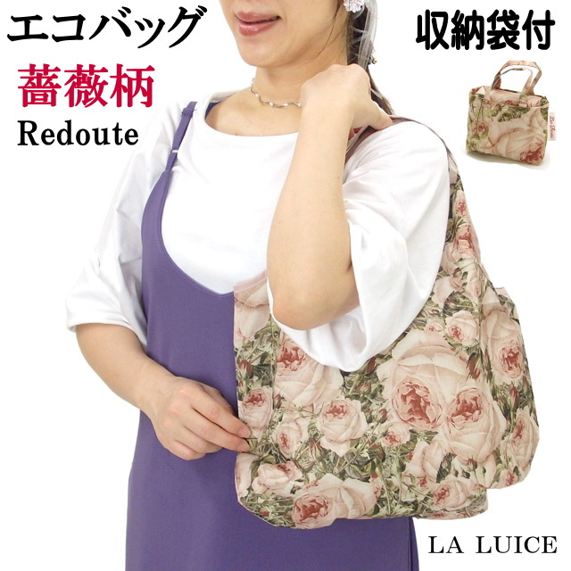 エコバッグ 折りたたみ 薔薇 ローズ ルドゥーテ バラ柄 補助バッグ 携帯カバン ローズ レディース ラルイス るいす プチギフト
