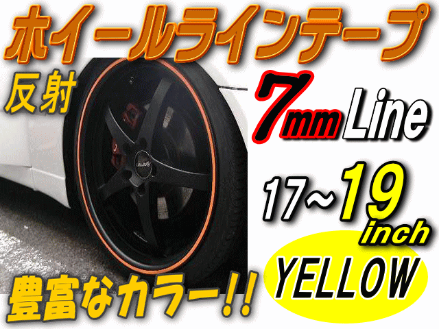リム (17〜19) 黄0.7cm 【メール便 送料無料】 直線 ストレート イエロー 反射 幅7mm リムステッカー ホイールラインテープ リフレクト リフレクター 17インチ 18インチ 19インチ対応 リムライン ホイールテープ ホイールステッカー 車 自動車 バイク リムストライプ